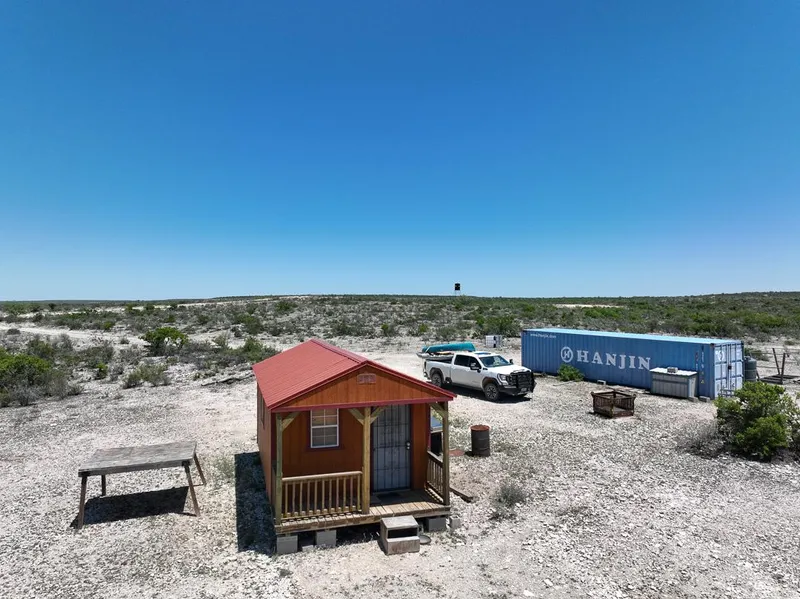 The ranch includes a newer cabin, water storage, shipping container, outdoor shower, generator, fuel tank, electric water heater, deer feeders, hunting blinds, a hog trap, food plot tiller, and exterior fencing. Theres a nearby shared water well, a solid interior trail system, and stunning hilltop views from the campsiteperfect for evenings around the fire.