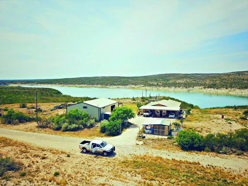 This Lakefront 3 bedrooms, 2 bath custom-built, the sustainable home sits on the Diablo Peninsula at Lake Amistad with a large covered porch and a stargazing deck that overlooks Sleeping Woman Mountain to the south and is very near the famous Curly Tail panther cave painting to the right which is one of the rarest Indian art in the world and only known to this Trans Pecos Art area. The insulated barn has 1 huge air-conditioned room and tons of storage and lake views upstairs, It has a recently updated bath downstairs, a large shop sink and counter, an amazing reloading/saferoom, tool rooms, storage galore, boat parking, workbenches, roll-up doors, and a large awning with concrete floor. The home and the barn have water catchment systems and a complete solar system connected to the grid in order to make this property completely self-sustaining in case of a power outage but able to sell power back to the grid. The improvements sit on approximately 2 acres and the property is just 7 minutes from Rough Canyon Marina and Hooker's store. The kitchen and living room have vaulted ceilings with an open concept and beautiful stained concrete floors and rare granite countertops. The laundry room is large and roomy with a sink and granite countertop and the bedrooms are very large. From every window in the home and barn are incredible views of the beautiful water and massive canyons. This property is perfect for your forever home or vacation home. Lake Amistad is known for its Trophy fishing and clear deep waters. Please contact Michelle Rushing, Broker 325-234-3077