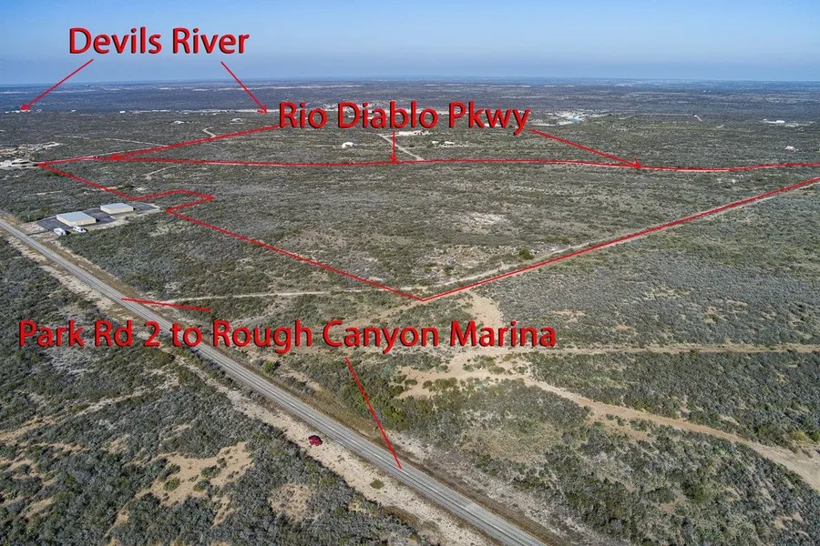 Great Opportunity! 98.97 Acres in Rio Diablo at Rough Canyon. Approximately 21.25 acres of commercial acreage that fronts Recreational Road 2 that leads to Rough Canyon marina and Amistad Lake boat launch as well as residential neighborhoods. 77 adjoining acres for future residential home sites that fronts Rio Diablo Parkway. Commercial lots include up to the back of the mailbox area and surrounding area to streets.
