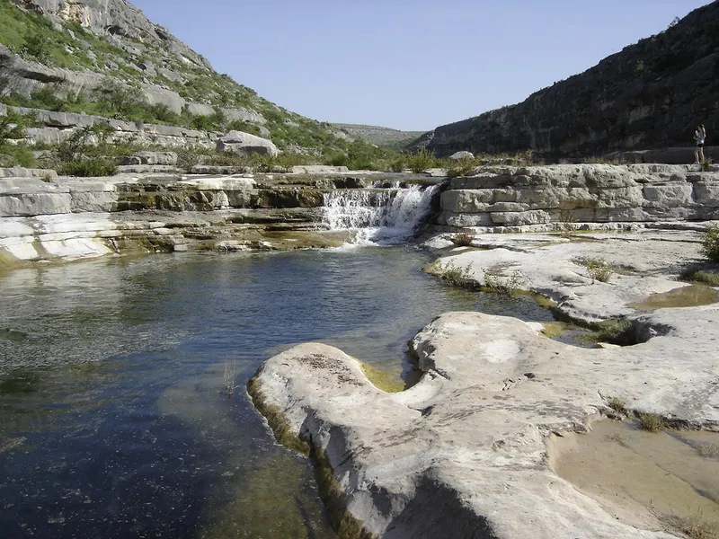 The Pecos river backs water up Lewis canyon about 3200 feed. This is navigable by boat and near constant river level even in the driest conditions.