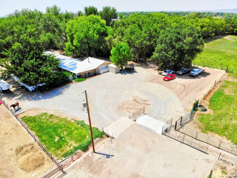 Horse lover's dream! Secluded, gated, and securely-fenced 9.5 acre farm, surrounded by trees! Private drive. Ditch irrigation. Round and square pens and full sand arena. 1.5 acre pasture turn out. Apx 5 acres alfalfa. Covered shed rows for 10 horses. Locking, insulated saddle room. Plenty of horse trailer/RV parking with RV hookup. 200 ft., 6.5'' well. Septic drainfield installed 2019. Two fenced areas for dogs. House has two separate living areas, both with full baths and instant water heaters. Vinyl Argon-filled windows and metal roof both installed in 2020. Upgraded electrical. Security doors. True country living. TWO ADJOINING PARCELS BEING SOLD TOGETHER. Also listed as Farm and Ranch MLS#998317