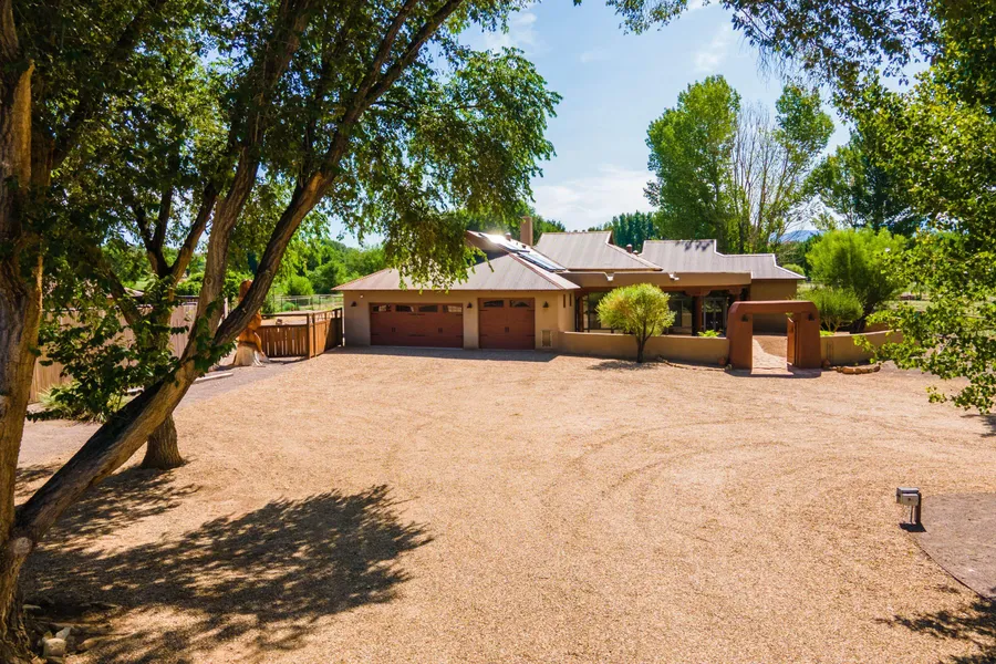 The 2.93-acre grounds include a barn is 36' x 48' barn with 4 stalls, a tack room with a center isle, corral, and horse run leading to a 1.5-acre pasture with pipe fencing around the horse stalls, corral, horse run, pasture, and outer perimeter of the property. The front gate is solar powered and is operated by remote control and keypad. The grounds around the home and casita are fully landscaped and no pesticides are used. And finally, this beautiful home in the Town of Peralta close to the border of the Village of Bosque Farms receives its delicious fresh water from a well on the property and irrigation from the Middle Rio Grande Conservancy District.