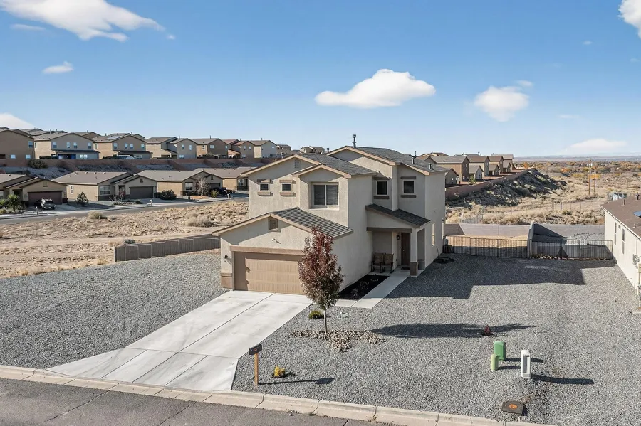 Looking for space? You'll find it here in Eastland Hills on this oversized 1/3-acre lot--perfect for RV parking, outdoor gear, and wide-open living. This nearly new DR Horton Coronado floor plan blends a peaceful, country vibe with modern construction, all just 5 minutes from shopping and restaurants and a quick 30-minute drive to downtown Albuquerque and the airport. Inside, big windows and an open layout fill the home with natural light. The kitchen's breakfast bar is a great spot for the family to gather, especially while watching gorgeous sunset views from the west-facing backyard. Upstairs offers three spacious bedrooms plus a cozy loft or home office. Only four years old and meticulously cared for, this home feels fresh, clean, and completely move-in ready. Don't miss it!