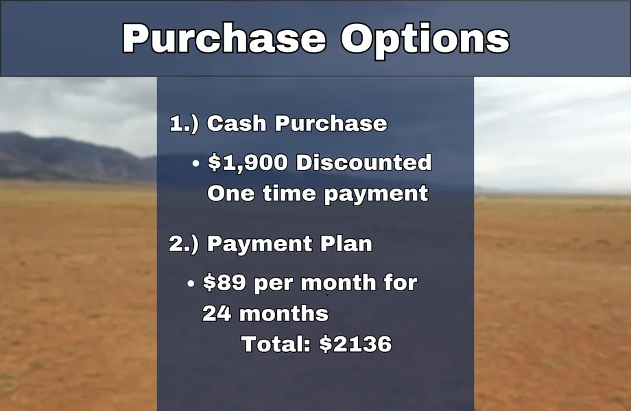 Your land-buying journey begins with a simple down payment of $89. With a term length of 24 months, you have the flexibility to choose your preferred due date each month for your payments. We aim to make the process of buying your dream property quick, stress-free, and easy.