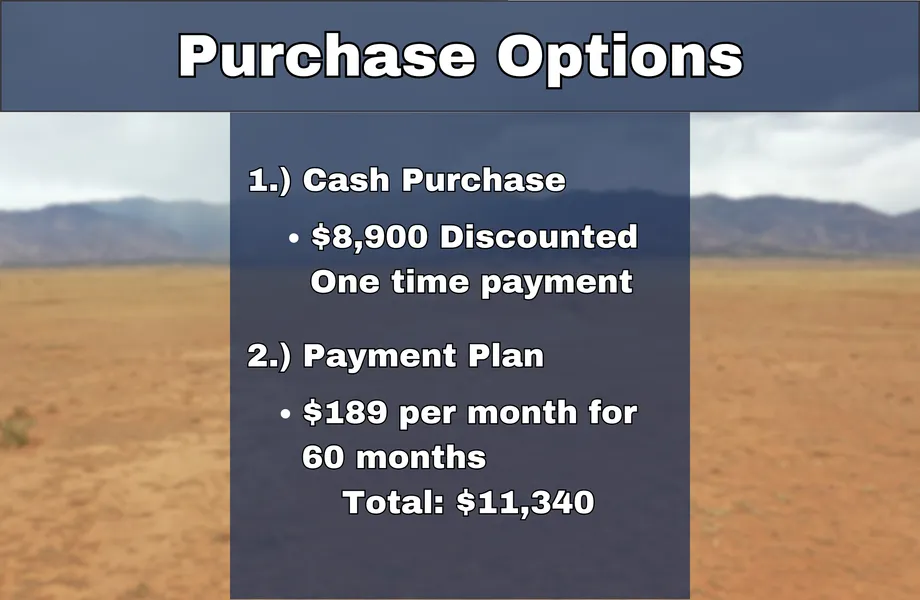 Your land-buying journey begins with a simple down payment of $189. With a term length of 60 months, you have the flexibility to choose your preferred due date each month for your payments. We aim to make the process of buying your dream property quick, stress-free, and easy.