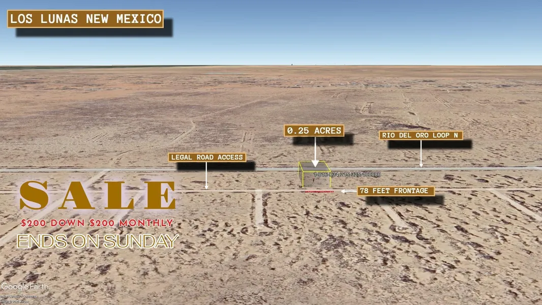 Discover the allure of the Southwest with this exceptional 0.25-acre lot in Valencia County, New Mexico. Priced affordably at $1,000, with a low down payment of $200 and manageable monthly payments of $200, this property offers an incredible opportunity to own land in a stunning location. While there are document stamp fees of $350, the overall cost remains remarkably accessible, making land ownership a realistic dream.