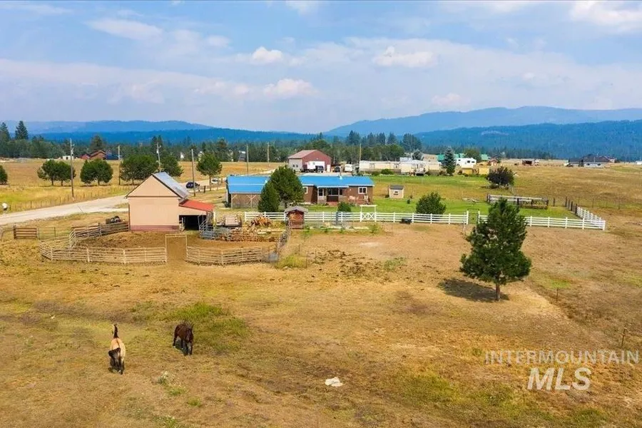 Located just minutes South of Lake Cascade, you'll feel worlds away from the everyday grind at this cozy 5-acre retreat. Enjoy sunny afternoons on the expansive covered porch, relax and take in the unobstructed views of West Mountain. The bonus family room is the perfect spot to curl up for an evening of movies and popcorn. And don't forget your horses and all the other farm animals you've always wanted! No HOA or CCRs, so bring them all! There are two fully fenced pastures with a seasonal creek running through. Spacious haybarn w/power and attached stalls, oversized two-car garage, outbuildings, storage galore for all your toys. The county maintains the road for year-round access. RV hookups and plenty of parking for family and friends to spend holidays at your little piece of paradise.