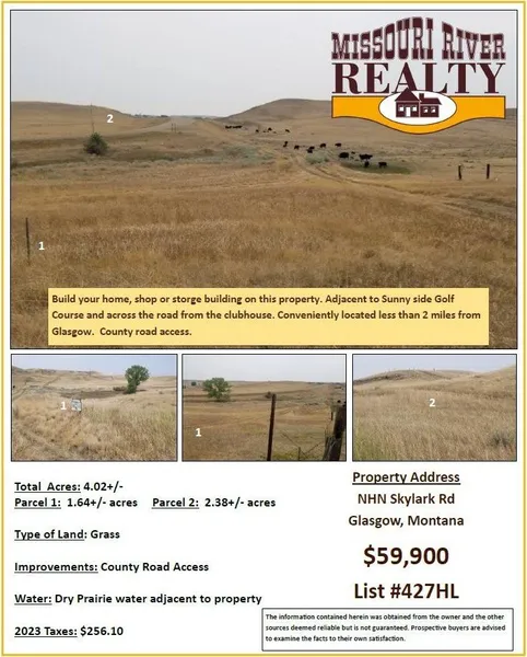 Listing # 427HL Now approved - Build your home, shop or storge building on this 4.02 acres. Adjacent to Sunny side Golf Course and across the road from the clubhouse. Conveniently located less than 2 miles from Glasgow. County road access.