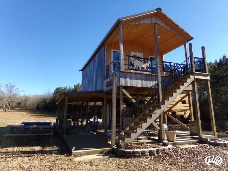PRICE REDUCED! Turnkey lake retreat! This lakefront property includes an amazing, completely off-grid, 2 story cabin, a gazebo with gas fire pit, and a boathouse with a swimming deck. The property is gently sloping land that fronts a 60-acre lake full of fish with Bald Eagles that often rest along its edge. The cabin has one bedroom with a full bath and shower, heated and cooled with a nice deck. It also has a great outdoor kitchen with another bathroom with a shower and is all solar powered and filtered water! In the center of the gazebo is a gas log fire pit all sitting on concrete. The screened boathouse has a swimming deck that is large enough for several people to relax on while fishing or swimming in the beautiful lake.
