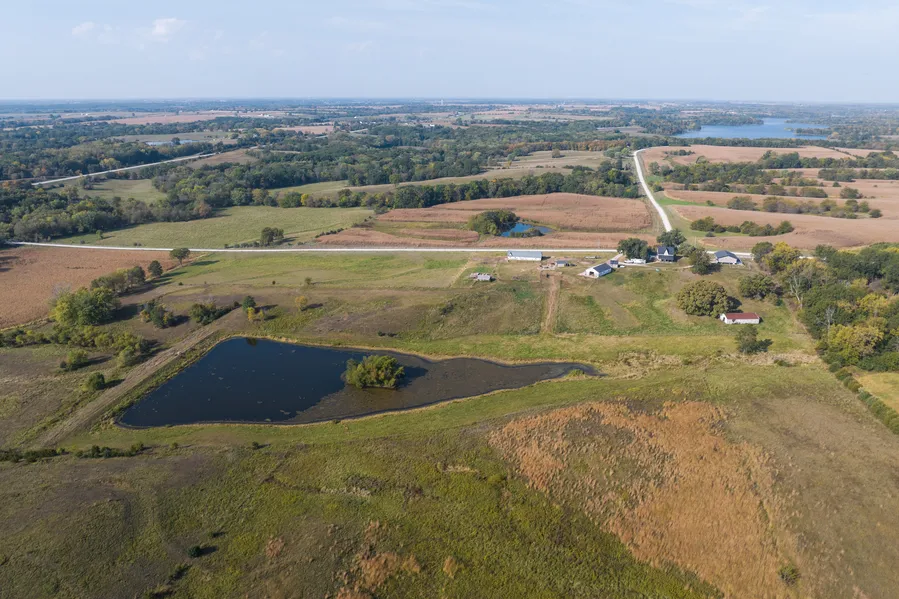 Nestled in the beautiful landscapes of Van Buren County, this sprawling country acreage has a farmhouse, spacious machine shed, and acres of open pasture and hay fields - all gathered around a large pond. Just a short drive south of Keosauqua and merely one mile from the recreation of Lake Sugema, this property offers the country lifestyle for horse lovers, cattlemen, or those who want to live off their own land. It's located on only half a mile of gravel road from paved Highway 2.The majority of the land is dedicated to pastureseight in total with good fencing and a couple sizable areas of hay. In the heart of the property is a three-acre pond stocked with bass, sunfish, and catfish, reaching depths of 20 to 25 feet near the dam. The wildlife love this valley, and travel across each morning and evening.The farmhouse features the primary bedroom and bathroom on the main level, along with an additional half bathroom. Upstairs, four rooms could be bedrooms, office space, or rec rooms. The main level also includes a cozy living room and a bonus room. The house is supplied with Rathbun Rural Water and shares the durability of a metal roof, a feature consistent across all buildings. The patio and deck have eastern views that stretch across the pond and the main pasture a perfect way to greet the day with an amazing view across the property.Adjacent to the farmhouse, an impressive machine building features three stalls, a concrete floor, insulation, and a half bathroom. Inside, 12 pens, once used as dog kennels, offer versatile spaces. The barn has six stalls, a tack room, two storage rooms, and a hay loft, all crowned by a sturdy steel roof. A shed with a spacious stall and additional storage sits conveniently near the barn. Further enhancing the equine setup is a round pen and two adjacent lots beside the barn.Whether you're a horse lover or simply want to live in the country, this property is a dream come true. Contact the Southeast Iowa Land Team at Whitetail Properties Real Estate at 319-853-1162 to schedule a showing.