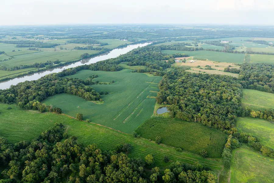 In my time selling land across southeast Iowa, I genuinely havent come across a place thats captivated me quite like this one. Simply put, when it comes to having a private home-based setup, it really doesnt get much better. For anyone whos dreamed of owning a farm with a cabin in the middle of nowhere, away from everyone elsethis is as close to perfect as it gets.This 208-acre property towers over the south bank of southern Iowas famed Des Moines River, set more than a half mile back from the nearest gravel roadat the dead-end throne of the appropriately named King Avenue. To top it off, its been set up by the nations renowned whitetail couple, Lee and Tiffany Lakosky.Lets start with the headquarters. Here, youll find a 1,860-square-foot, 3-bedroom, 2-bathroom ranch home on a concrete slab. The layout is modest and cozy, with an inviting living room and three bedrooms. Two full bathrooms mean you dont have to share with guests. Theres a full kitchen, laundry room, and a dedicated gear room for hunting clothes and equipment. But the best part is the west-facing patio that overlooks the farm. The view alone could sell this placeit really is one that makes you never want to leave.Just steps away are three metal-wrapped outbuildings with room to store all the equipment youll need, plus a dedicated skinning shed complete with power hoists, lighting, and a chest freezer. Its a clean and efficient setupbring your game back, process it in comfort, and then step inside to relax after a great hunt on a great farm. The yard is dotted with apple trees hanging with fresh fruit, and theres a stocked pond just below the house.The farm features a near-perfect 50/50 ratio of open ground to timberproviding not only strong income potential, but also the kind of layout that draws and holds deer when the weather turns cold. This year, Lees plan includes 45 acres of soybeans and another 5 acres planted in clover and fall blends. The north end is all cover, with great edge and approach for northerly winds. On the south side, the timber is flanked by corn and massive alfalfa fieldsan unbeatable setup for keeping deer close in the thick southern block.Plenty of hunting farms come up for sale across southern Iowabut its been a long time since weve seen one with a setup like this. From the end-of-the-road seclusion, to the hilltop setting above the Des Moines River, and the location within a trophy neighborhood of Van Buren County this offering is truly one of a kind.This is one of three farms that were offering for sale within a 5-mile drive of each other - 453, 133, and this 208. All together these make a turnkey offering of signature hunting farms that are managed by the Lakoskys, right here in the heart of Van Buren County.
