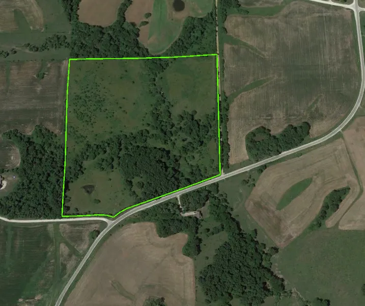 41.35 acres m/l located in Sections 1 & 12, Twp. 70, Range 11 on a hard surface road (Hwy. V64) 5 miles south of Libertyville. This tract would be ideal for a small recreational property, weekend getaway, building site. With some fence work it would make good pasture & hay ground. Rathbun water and electricity is at the road. 2 good crossings to access both sides of the creek and access from the east by a level B dirt road (Fir Ave.) wild life on property as well