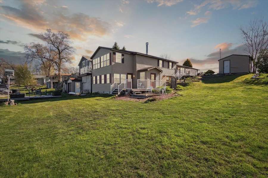 Coming to the Market for the first time, this well loved home was custom built and is one-of-a-kind. Situated perfectly on a large corner lot with over 90' of frontage on Bankson Lake (famous for it's fishing). 4 bedroom, 2 full bathrooms. The spacious and welcoming living area is prefect for relaxing after a day on the water. with a wood burning fireplace and West facing views of the lake. You will capture some of the most stunning sunsets you've ever seen. The bedrooms are generously sized and offer plenty of natural light. The walkout basement is a fully finished family/rec room w/ pool table. Outside, you'll find plenty of room for activities with a large deck & patio, overlooking the water and private dock.