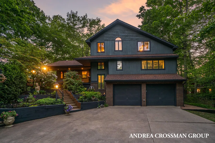 Welcome to the stunning and updated rustic contemporary lakefront home in the desirable beach community of Glenn Shores. The house boasts a beautiful new kitchen, renovated bathrooms, and a luxurious main floor bedroom suite. Step outside to the inviting outdoor area with a hot tub and 130 ft of Lake Michigan frontage. Enjoy breathtaking views from almost every room, and elect to be take part of the association for beach access with over 2,000 plus feet of beach frontage. Additionally, the property is perfectly located, just a short drive away from both South Haven and Saugatuck. Whether youre seeking a second home or a full-time residence, this house offers a cool up north vibe. The loft over the garage provides a great flex space, use as a studio, sleeping area, or game room.Dont miss the chance to make this exceptional property your own