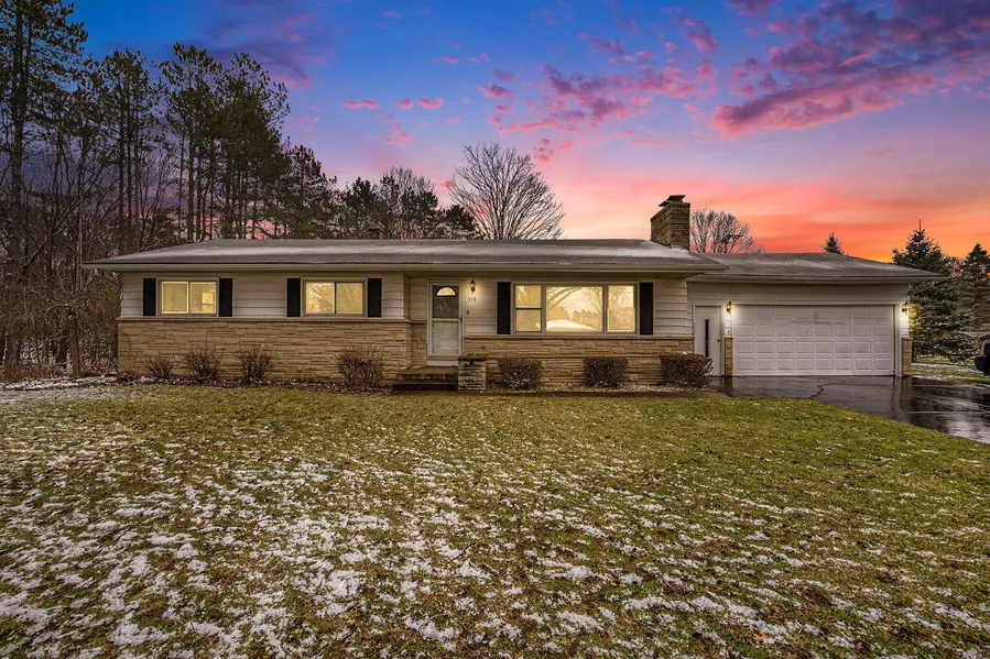 Well-maintained ranch home with many features! On the market for the first time since construction. The eat-in kitchen offers plenty of cabinets and the spacious dining area is perfect for entertaining. The large living room features a stone gas fireplace. The primary bedroom is expansive with a walk-in closet and ensuite with a walk-in shower. The two additional bedrooms are located near the second full bath. The partially finished basement features a family room with a wood-burning fireplace. Situated on a large corner lot on a quiet street, this location is within walking distance to schools, shopping, and the downtown area. Other amenities include a whole house generator, attached 2-car garage, and pole barn for storage. Don't miss out, schedule a showing today!