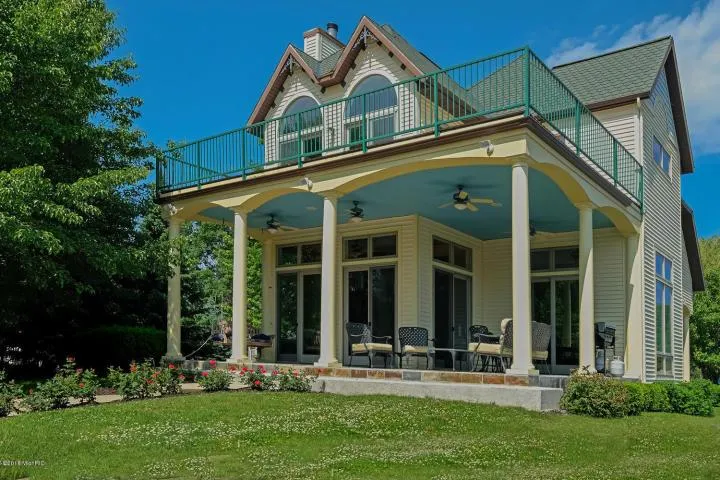 This spectacular riverfront home is offered for the very first time. With 70' feet of private dock frontage on the Black River, and easy access to Lake Michigan, this property is perfect for boaters, and ideal for any buyer in search of a front row seat to boating, kayaking, swimming and enjoying bird life and natural views. The main level open living space is both cozy and luxurious. With an 11.5 foot coffered ceiling, the space offers great river views from the kitchen, living and dining rooms, as well as easy access to the outdoor covered patio -- ideal for both family and entertaining. Four bedrooms upstairs, with decks off of three of them, offer plenty of living space and outdoor enjoyment. Minutes from I-196, and two hours from the Loop. Two adjacent buildable lots available.