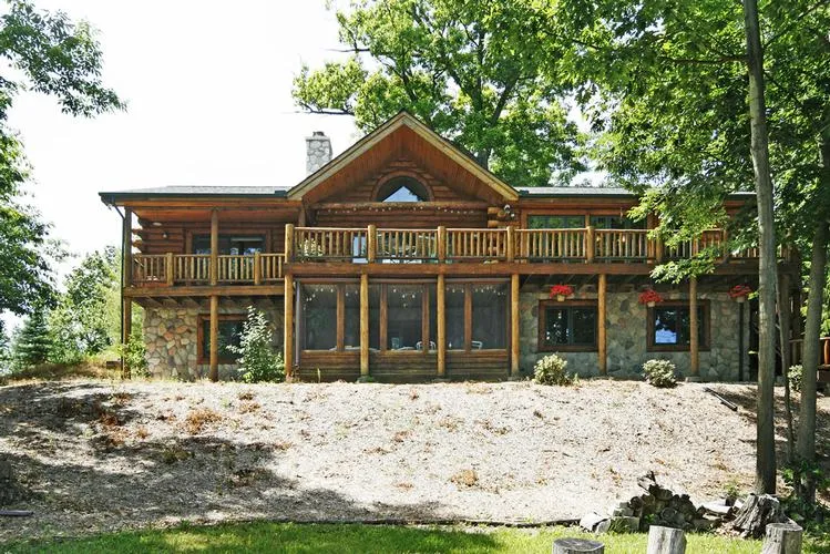 This property offers a long list of amenities and benefits. A custom-built log home, with almost 4,200 sf of finished quality space, has 5 bedrooms and 4 full baths. The first floor Master Suite and living space allow for single-level living, while family or guests can have privacy on the walkout level. The gourmet Kitchen, expansive decks, and water views are ideal for entertaining. And the sandy beach and 400 feet on all-sports Great Bear Lake offer great recreation and privacy. Within easy drive time from Chicago, Detroit, Grand Rapids and northern Indiana, this is a great destination for buyers looking for a property that supports a wide variety of activities, including great hunting, fishing and nearby winter skiing, as well as bicycling/walking and snowmobiling on the Kal-Haven Trail. Possible lot split pending Township approval. See attached survey for division #2.