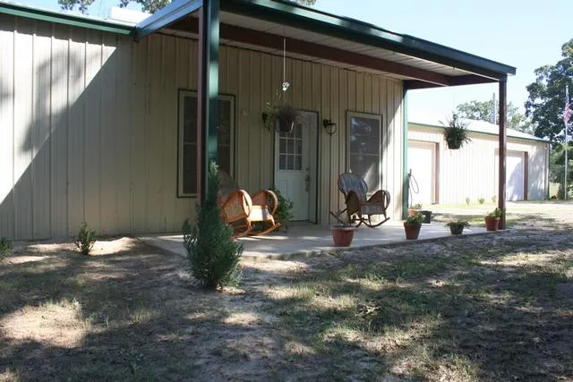 Whether you are single, empty nesters or newlyweds, this property could be perfect for you. Constructed out of metal and perched atop a secluded one acre, this property has it all. With its open living floorplan, this large kitchen is wonderful for entertaining. Custom oak cabinets, stainless steel appliances, granite countertops as well as a large island with a cooktop complete this perfect setting which overlooks the family room and has plenty of space for an additional sitting area. The floors are scored concrete for durability with an abundance of lighting and beautiful warm colored walls. The bath has custom cabinetry with a Jacuzzi tub and walk in shower. While the main house has only one bedroom, there is plenty of room to grow. Aside from the house, this property also includes an attached oversized two car garage which could easily be converted into additional bedrooms for the growing family as well as an additional oversized workshop that is also attached. You can enjoy the beautiful weather and seclusion rocking on your covered front and back porches. Surrounded by beautiful mature trees, this .75 acre is completely fenced with pipe fencing and the property is surrounded by beautiful ranch land. Priced at $84,900 and under assessed value, this is the perfect country getaway!