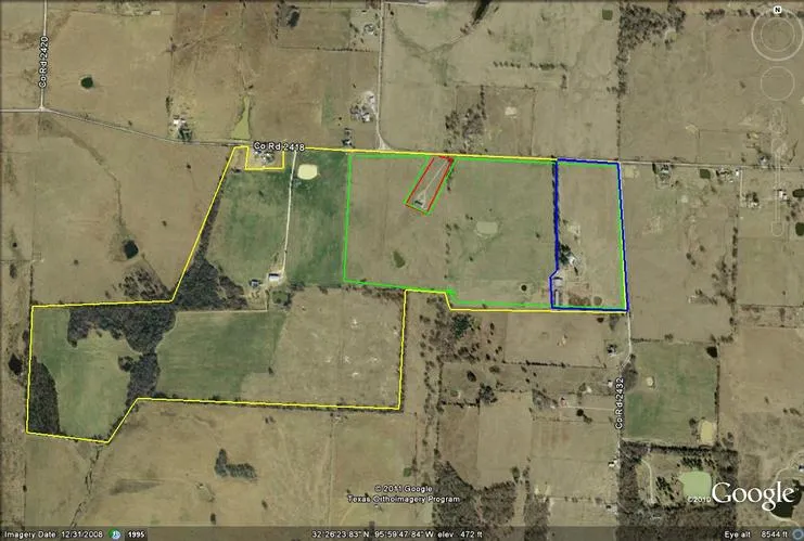 Beautiful custom home that features 4 bedrooms, 4.5 baths, (2) large living rooms with fireplace & full bar. Formal dining room, large kitchen, swimming pool, lighted tennis courts, guest quarter that is connected to main house by a breezeway. Guest quarters feature large room (that could be bedroom and living room), 2 bathrooms, convenient to the pool area so it can be used as pool house if needed. There is a lighted riding arena, holding pens are connected to arena and have a 30'x200 covered shelter in the holding pens along with water in all sections. 200 x 131' Working pens are connected to barn & holding pens as well as to livestock scale and overhang of barn. Barn #1, closest to the house, is 50x75 with a 780 SF apartment.All these improvments are being sold with 122+-acres. Aerial photo shows 122+acres outlined in green Entire 314 +/- outlined in Yellow.House & 20 Acres in Blue