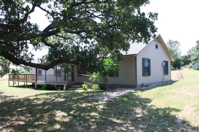 EXCELLENT LOCATION...GOOD ROADS...BEAUTIFUL VIEWS...MAGNIFICENT OAKS...APPROX 1.5 ACRES...3 BR, 2BA split with 2 living areas featuring open concept, vaulted ceilings, WB stove. Game room, office, or 4th BR upstairs. Small acreage completely fenced. Wrap around porch to sit and enjoy.