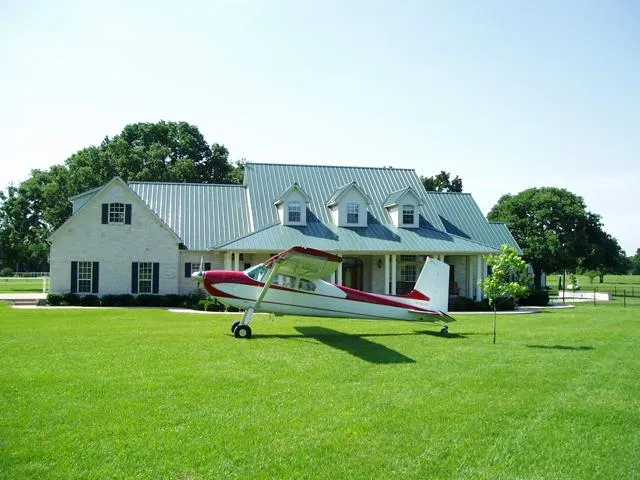 Airpark Living With Impressive East Texas Horse Ranch...Austin Stone, Hill Country Style 4BR 2.5BA 2-Story Home with many tasteful amenities throughout. Lovely pool and spa with outdoor fire pit. 36X36 State-of-the-art 2 Stall Horse Barn with porches. 50X65 Private Hangar with full apartment and RV storage. Full access to Tailwind Airpark (1TA7) out of Class B airspace. Approx. 12 Rolling Acres, pipe & cable fencing and pond with fishing pier.
