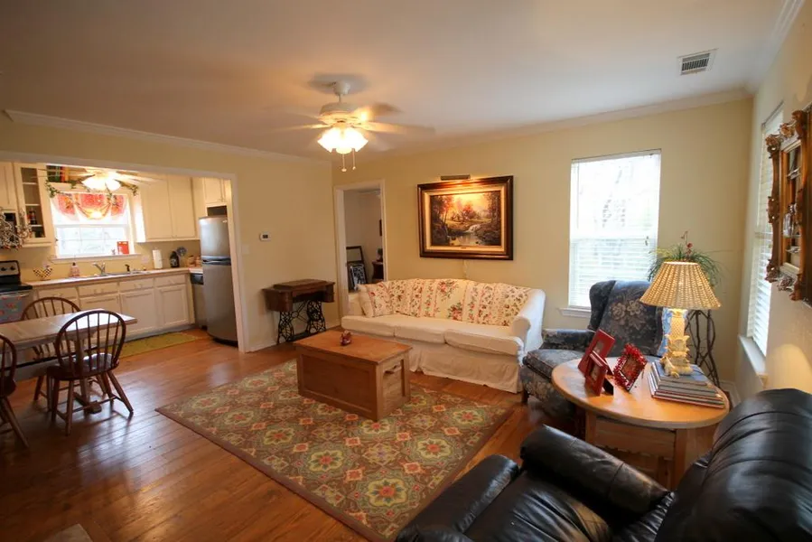 Overflowing with charm. Perfect for the weekend getaway or full time residence away from it all. 3 bedroom 2 bathroom cedar cottage with standing seam metal roof. Interior has hardwood floors, stainless appliances and stone fireplace. Large porch across the front perfect for those rocking chairs. Small sunroom on the back of the cottage. 30X50 metal barn with a kitchen and full bath inside. Overhead doors and loft for even more storage. Gentle rolling hills and very well cared for 50 acres with three stocked ponds and a running creek. Fenced and cross fenced perfect for cattle or horses. There is a well on the property used for irrigation. You will fall in love with this one. Owner will separate into smaller tracts including house with just a few acres.
