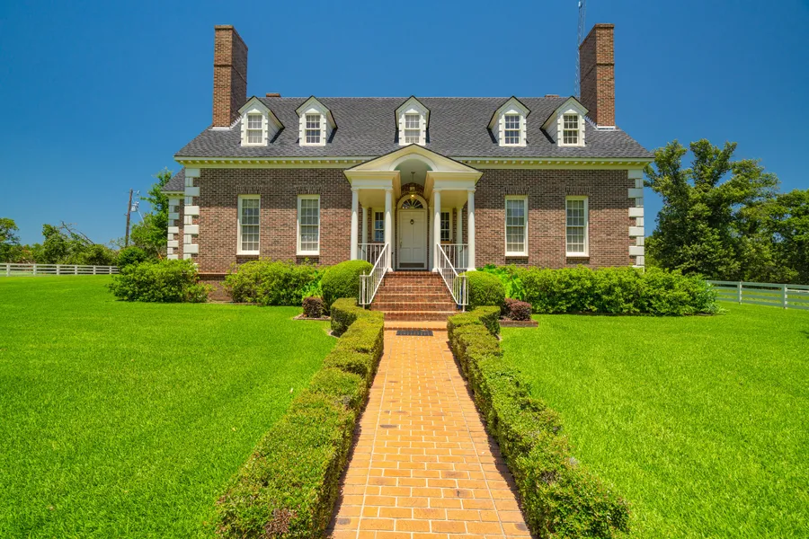 The attractive 2-story main home was constructed in the late 1970s containing 2,900 sqft in a private portion of the ranch. The attractive 2-story main home was constructed in the late 1970s containing 2,900 sqft in a private portion of the ranch.The home is a replica of Gunston Hall, the Virginia residence of Founding Father George Mason, the primary author of the Virginia Constitution and the Virginia Declaration of Rights, whose inspiration and language were used in the Declaration of Independence. The house is a very well-built match, with a colonial-style exterior and extensive amounts of wood design throughout. Downstairs has a nice kitchen, adjacent dining room, half bath, and plenty of seating room with multiple living rooms with brick fireplaces. The home has 3 upstairs bedrooms and 3 baths. The large master bedroom has ample natural light filtering through dormer windows and the master bathroom has extensive wood paneling. Some updating might be needed to the house, but the overall quality is astounding.