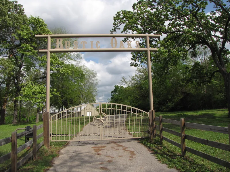 RUSTIC OAKS RANCH...a wonderful retreat in an area known for it's bed and breakfast lodging. The property has 24+ acres with 3 stock ponds, plenty of wildlife (deer), is completely fenced and has an automatic security gate. The home (50x30) is part of a 50x90 "barndominium." It has an open floor plan, a wood burning fireplace in the living area, fully equipped kitchen with granite countertops, stained concrete flooring throughout and a tin ceiling that was rescued from an old barn that used to be on the property, and a screened in porch. There are 3 overhead doors in the garage/storage/workshop area with an upstairs balcony. A stone patio with a fire pit provides the perfect spot to relax and unwind in the evenings. This property is a perfect "get away" place and is definitely a MUST SEE!!!