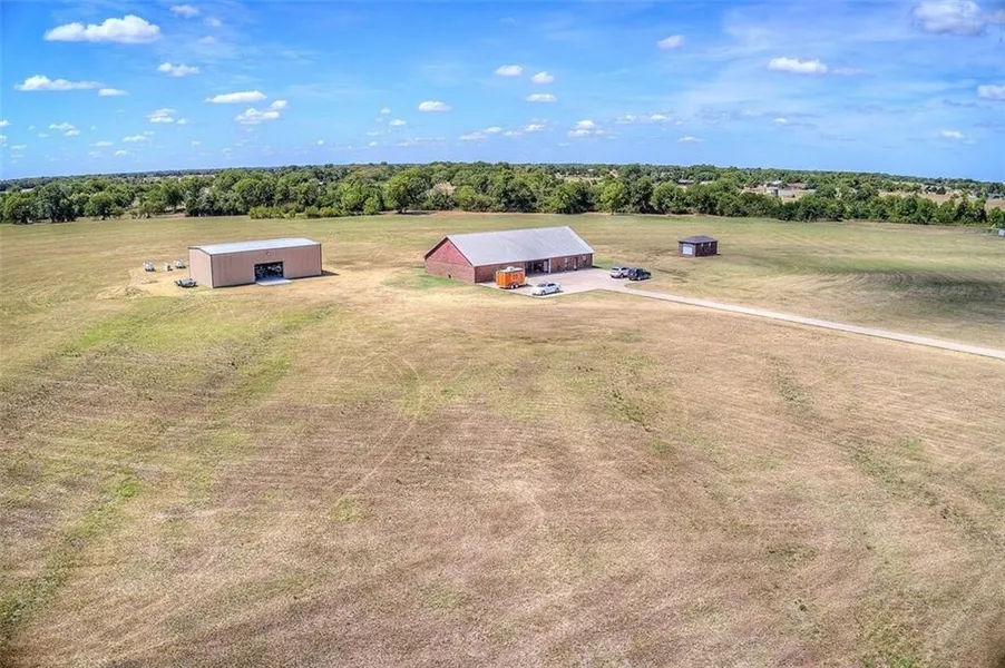 Unique Barndominium and Workshop Combination, 1000 Sq. Ft. Living Space, Custom Built with Heated and Cooled Workshop. Home offers 2 Bedrooms, 1 Full Bath and Workshop has 1 Half Bath. Workshop with Home is 3240 Sq. Ft., Workshop Additional is 2400 Sq. Ft. with Water and Electric. Drive up the Concrete Driveway to this Splendid Property. Property has AG Exemption and a nice pond, fully stocked with feeder and a deck for Fishing. Additional 1 Car Garage for Yard Equipment or Storage. Great Opportunity, centrally located for a business and residence.