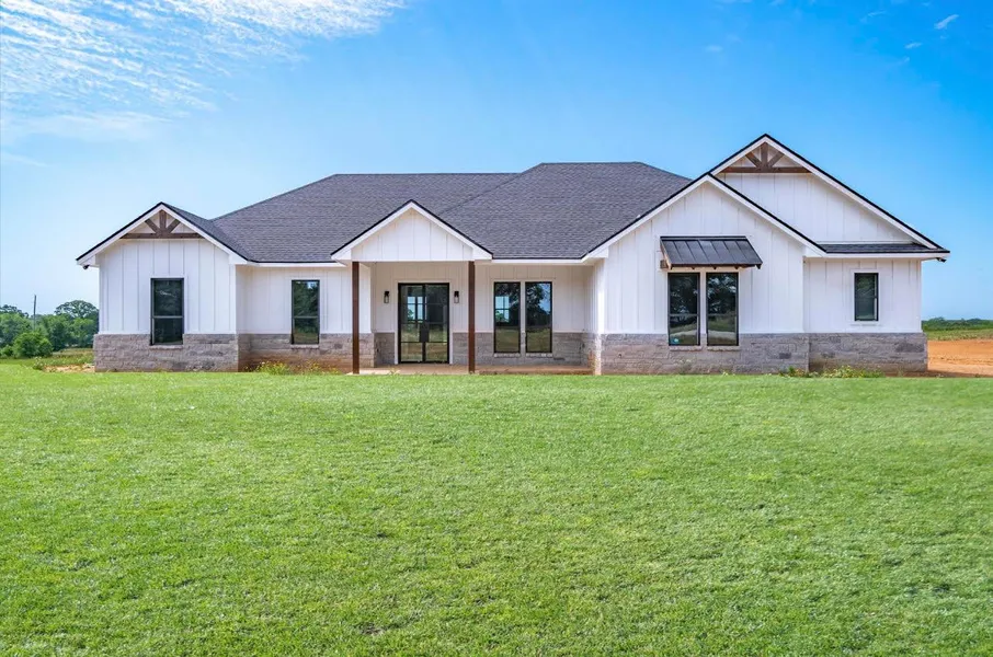 This stunning 4-bedroom, 2-bathroom new build home offers a perfect blend of, modern comfort, natural beauty, and rural charm. Making it the ideal retreat for those seeking a peaceful rural lifestyle. The exterior of the home displays classic farmhouse charm, featuring a pristine white facade, contrasting black window frames, and a welcoming front porch. The open-concept living space seamlessly connects the kitchen, dining area, and living room, making it an ideal layout for entertaining. The master suite offers a serene retreat with an ensuite bathroom and generous closet space. Three additional bedrooms provide flexibility for guests, family, or a home office. Both bathrooms feature contemporary fixtures, elegant tiling, and abundant natural light. The spacious back porch provides an ideal space for outdoor entertaining. This home is the perfect escape from the hustle and bustle of city life while still being within a reasonable distance from Canton and Mabank.