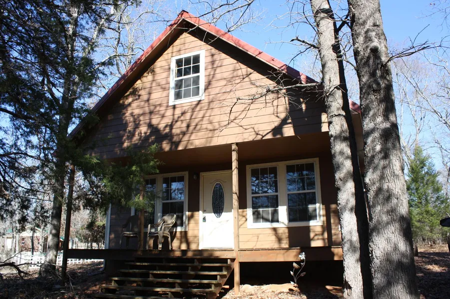 Very well maintained Cabin with unmatched character. Cabin sits on corner lot and has storage building. Huge Front Porch with photogenic lake views. 1 Bedroom with loft. Open Concept. Vaulted ceilings with exposed beams. Gated community. Private Lake. Furnishings will convey.