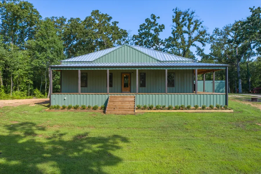 Newly built 3 bedroom, 2 bathroom house with a wrap around covered porch that sits on approximately 12.43 acres waiting for you! Walking into the house, you enter the living room area with pan ceilings. The kitchen has a metal decorative wood burning fireplace with a stone and wood mantle accent. Stainless steel appliances and countertops really make this kitchen stand out! Massive laundry room with plenty of storage and counterspace. On one side is the isolated primary bedroom with an ensuite bathroom. The primary bedroom has a pan ceiling feature, a large walk in closet, and a bathroom with dual vanities, a walk in tiled shower. Plenty of land to make your own Texas dream so don't miss out!