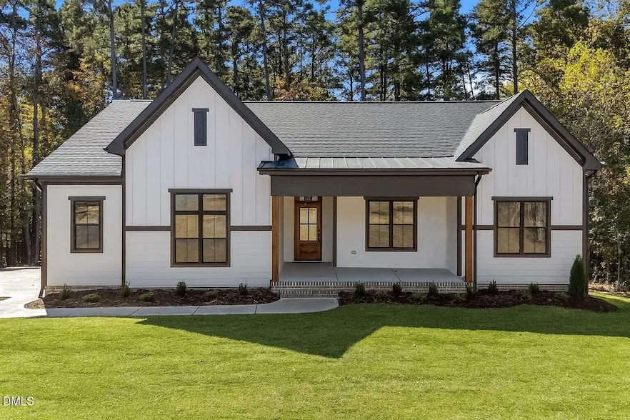 Trabar Homes has done it again! This beautiful new construction offers over 1,800 sqft of thoughtfully designed living space, perfect for entertaining or relaxing by the lake. Enjoy the open layout with LVP flooring throughout the main living areas and bedrooms. The spacious living room features a vaulted ceiling, gas log fireplace, and custom built-ins for timeless charm. The chef's delight kitchen showcases a stunning 7' island, tile backsplash, recessed lighting, stainless steel appliances, and a walk-in pantry. A convenient drop zone is located off the garage, along with a separate laundry room complete with cabinetry and a sink. The private primary suite offers a tray ceiling, a 10' walk-in closet with custom wood shelving, and a luxurious bath featuring a double vanity and a fully tiled oversized shower. Two comfortable guest bedrooms with ceiling fans share a full bath with an oversized vanity and tile surround tub. Enjoy outdoor living from the covered front porch or the screened rear porch overlooking your backyard. Additional highlights include a 2-car side-entry garage and a dock permit already in place - ready for you to build your dream dock on the waters of Kerr Lake!