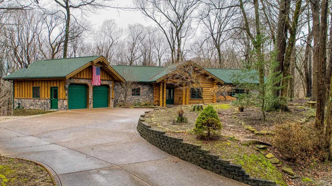 Situated on 6.35+/- acres on the west side this custom built log cabin style home with updated finished walk-out lower level and 36x24 pole barn offers a private setting and vacation feel yet is minutes from city conveniences. This 4 bedroom, 3.5 bath home with stone accents and covered front entry is move-in ready and offers many recent updates by the current homeowners including finished lower level with newly added full bath, wet bar, new water filtration system and more. The foyer with hardwood flooring that continues throughout the main level opens to the spacious great room with soaring ceiling with beams and floor to ceiling stone fireplace and a wall of windows providing gorgeous views of the wooded acreage with an abundance of wildlife. The great room is open to a dining room. The kitchen will delight any cook and offers a cook-top with custom exhaust hood, wall oven, an abundan...