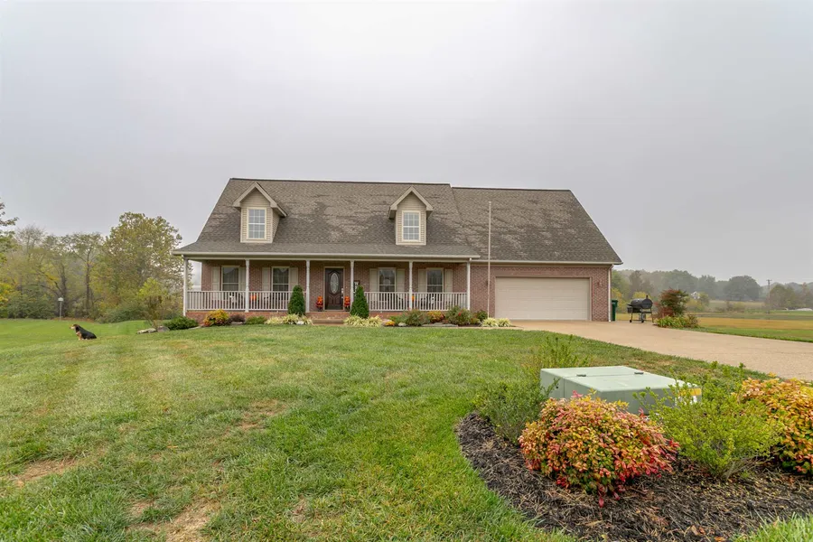 St. Phillip Area-1.5 story home on over an acre lot consisting of 4 bedrooms, 2.5 baths, full unfinished walk-out basement with poured walls ready to finish. This quality built home in 2006 features 6 panel solid wood doors, warms stained wood, custom made Amish made cabintry graces this fully applianced kitchen. Living room is framed for future fireplace if you choose to add one. GEO Thermo, 5 Ton AC was installed approximately in 2016. HUGE first floor master, large walk-in closet is also complimented by ensuite with double sinks, separate walk-in shower with a whirlpool tub. Two of the upstairs bedrooms have built in window seats with storage below. The 4th bedroom/bonus room is good size with tons of additional storage in the eaves or possible walk-in closets on each side of the room. The back deck overlooks the scenic backyard lined with a row of trees. The walk-out basement has roughed in plumbing, storm shelter and poured walls. Oversized 2.5 attached garage with additional storage area for one's mower and/or tools. Lots of fresh paint plus a One Year Upgraded AHS Home Warranty also included. Detached barns allowed (see restrictions)
