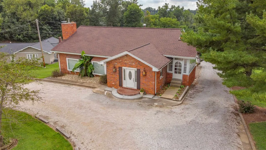 Acreage? A great neighborhood? An open floor plan? A beautiful property? Yes to everything! Wonderful curb appeal with curved front driveway and stone front porch. Fabulously expansive 2 story Great Room with Living and dining room area. The cathedral ceiling is open to the upper level Loft Room & has beautiful exposed wood beams throughout. There is an attached 3 season room that overlooks the side yard and pool. Great Room has original hand pegged oak floors, floor to ceiling brick wood burning fireplace and two over sized front window seats. The Kitchen has plenty of cabinets & counter space, stainless steel appliance & 8 burner gas cook top, built-in oven and brick exhaust. The large owner's suite has a full bath with an abundance of cabinets, 3 walk in closets and a built-in shoe closet. The main level also includes a second full bath. The lower level offers a spacious family room with full bar, second wood burning fireplace and 2 half baths. There are two additional rooms both with closets that could be bedrooms or an office. The large laundry leads to a fantastic open finished space perfect for a home business. The attached 3 bay garage has a built-in ramp and tall over head doors. Outside you will find a fenced in salt water in-ground pool with covered cabana and a large pole barn. Property is zoned commercial and perfect for a home business.