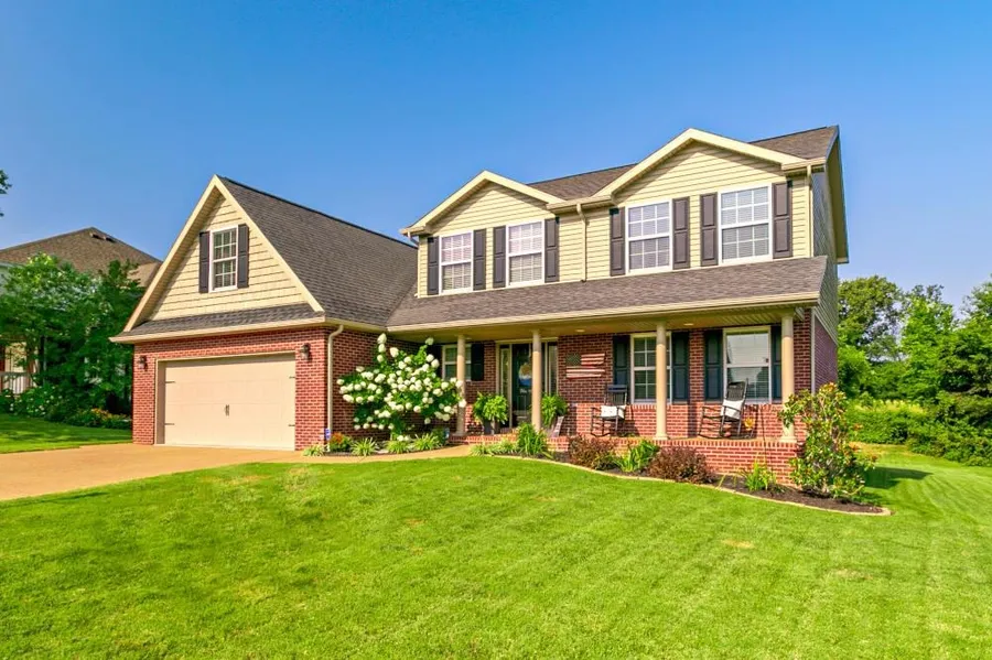 This immaculate custom built home with 4 bedrooms + bonus and 3 full baths has great curb appeal with covered front porch and offers many upgrades and amenities that will not disappoint including full brick exterior on the main level. Outdoor enjoyment is easy with the large covered back porch and patio overlooking the private lot with mature tree line. The main level offers a great room with fireplace that is open to the kitchen with custom tiled backsplash, abundance of cabinetry, pantry, breakfast bar, stainless steel appliances, and a large dining area. French doors off the great room lead to the den/office. There is a full bath and mudroom with cubbies off the oversized 2.5 car garage finishing the main level. The second level offers a bonus room with closet perfect for media and play. The master bedroom with trey ceiling offers a master bath with double sink vanity, large walk-in s...