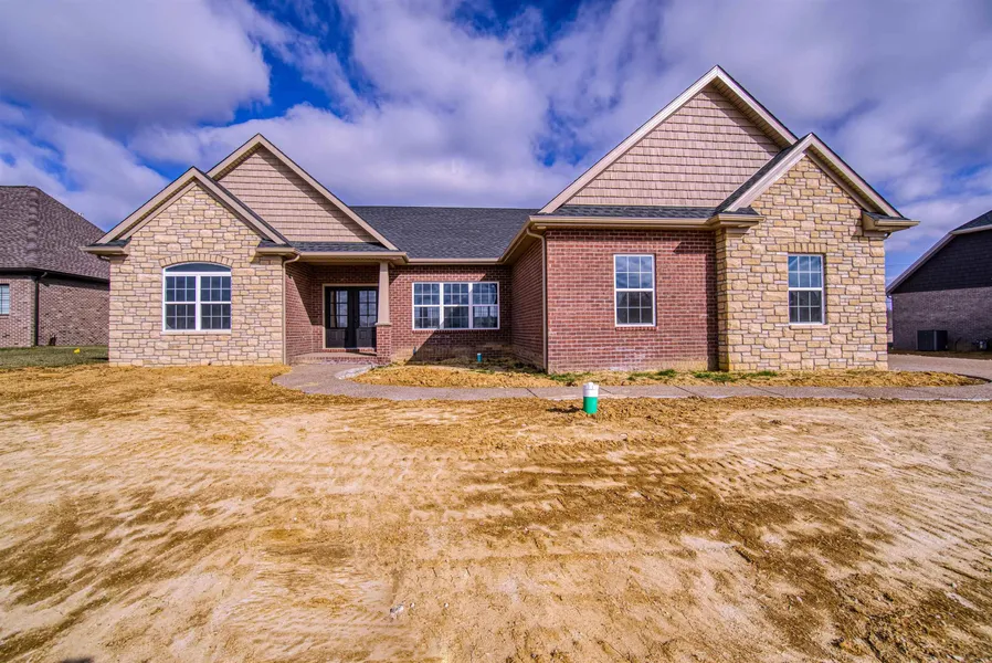 This gorgeous new construction home situated in desirable Cambridge Village Golf Course Community which provides a resort like lifestyle features 4 bedrooms, 3.5 baths, and a 3.5 car side load garage. You will appreciate the quality construction of this beautiful home with stone accents and double front door with covered entry providing impressive curb appeal. This home with golf course views features a large covered back porch overlooking the country side that is perfect for relaxing. This custom built home by Sterchi offers an open floor plan and is loaded with amenities including engineered hardwood flooring, crown molding, quartz counter tops, and much more. The spacious great room with fireplace and custom built-ins is open to the kitchen offering a large island, dining area, walk-in pantry, and upgraded appliances including gas cook-top and wall oven. There is a dining room for holiday entertaining. The owner's suite with tray ceiling and double crown molding features an ensuite bath with two large walk-in closets, double sink vanity, commode closet, and walk-in shower. There is an additional bedroom with private full bath perfect for in-laws and guests. The split bedroom design offers two additional spacious bedrooms with access to the full hall bath with tub/shower combo and double sink vanity. The large laundry is conveniently located off the oversized 3.5 car garage with floored attic access. This new construction home is situated on a large lot in Cambridge with the community offering pool, tennis courts, activity center with fitness area in addition to beautiful views of the lakes, golf course, and a Clubhouse that is open to the public with restaurant.