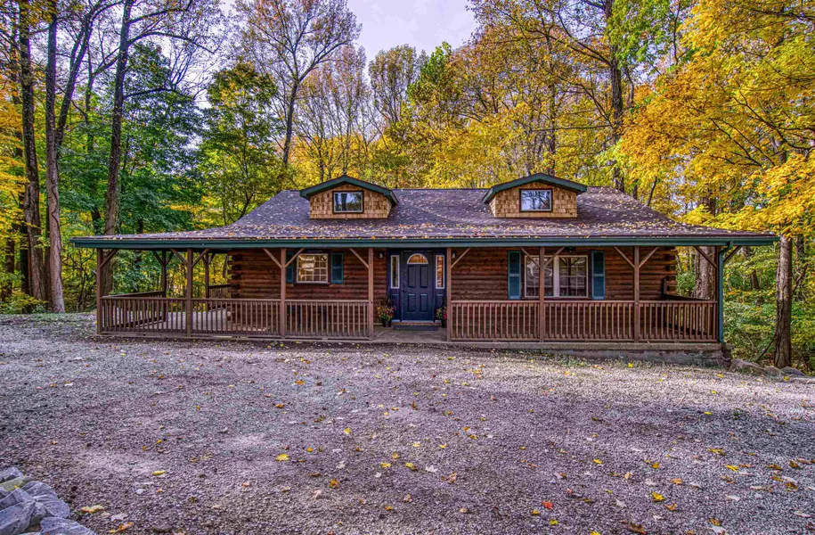 Rare opportunity! Tucked away on a 1.58 acre parcel of secluded wooded scenery painted with red, orange, yellow and green foliage this beautifully crafted log cabin will have you feeling like you are vacationing in the mountains while still maintaining the convenience of living near all of the amenities of the west side of Evansville and Mount Vernon. The home offers over 2,000 square feet of finished living space including a full walk out basement. The main level features a large vaulted great room, kitchen, 2.5 bathrooms, 3 sizeable bedrooms with more opportunities downstairs. The kitchen provides you with an abundance of cabinetry, stacked stone backsplash, pantry, and stainless steels appliances. The main level boasts ample amounts of natural light and inspiring views along with gorgeous wood finishes and laminate flooring. The downstairs features a full walkout basement leading to a large concrete patio. Outdoor amenities feature a large covered porch, expansive deck along the back of the house, concrete patio on the basement level and a detached 40'' x 30' x 14' pole barn with a poured concrete floor waiting for your next project.