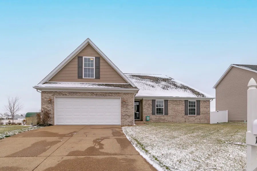 Ranch style home with a traditional floorplan PLUS a bonus rom that could be a fourth bedroom located in popular Creekside Meadows in McCutchanville. Step into the foyer to find all new luxury vinyl plank flooring throughout the living areas, and new premium carpet in the bedrooms. The living area is spacious and offers plenty of options for furniture arrangement and placement; high ceilings and a display ledge are added features. The kitchen features a raised bar with seating, and an eating nook with sliding door to the rear patio. Backyard is nice size and adjoins the rolling countryside horse property behind, plus features a large yard barn and wood privacy fence. The kitchen is spacious with loads of cabinets and counter top space, plus pantry storage with drop zone in the laundry room that connects to the 2 car garage. Down the hallway are the 3 bedrooms, all with new premium grade carpet. Hall bath with tub/shower combo. Owner's bedroom is nice size with a walk-in closet and bath with dual sink vanity, tile shower, and linen closet. Upstairs is the bonus room that could easily be a fourth bedroom with a closet and window overlooking front yard. This home is in tiptop shape and well cared for since the owners purchased it new in 2013 from Eagle Construction. Tankless gas water heater, hi-eff gas furnace and AC. American Home Shield warranty included.