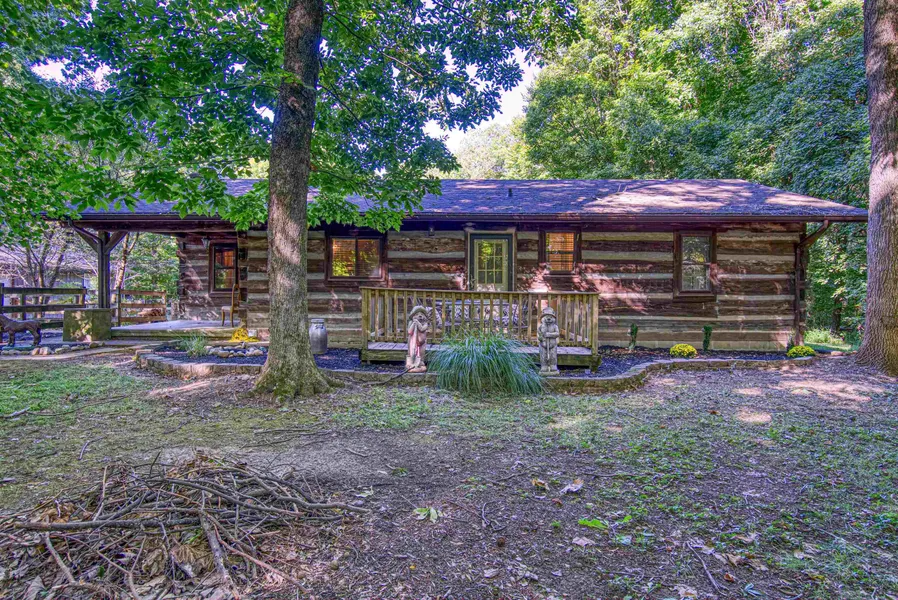 RURAL WEST-Rustic log cabin nestled on a 1.73 wooded acre lot. This 3 bedroom, 1 bath home boasts over 1300 sq ft of living space is complimented by a stone fireplace with cast iron woodburner, some original wood floors with wood nail pegs, exposed log walls and unique deer antler ceiling fans! Remodeled bathroom features ceramic tile bath surround, custom glass shower doors, tile flooring along with ship lap ceramic walls. Fully equiped kitchen includes cooktop, wall oven, Kitchen aid stainless refrigerator, dishwasher, ceramic backsplash also included are stainless Samsung washer and dryer. 2 (24x24) detached garages will provide plenty of storage. One of the garages was once used as a horse stable. There is also a storm shelter measuring a whomping 16x20! Additional features are: newer deck, covered front porch, roof approximately 3 years old, HVAC 5 years, water heater 2022, AHS Home Warranty also included. Quiet, peaceful setting is perfect for outdoor entertaining.