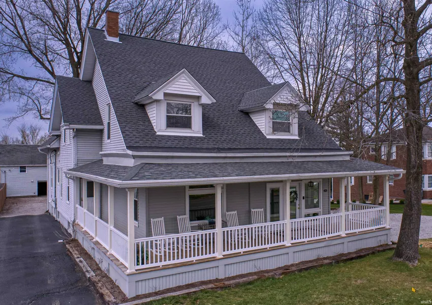 Start Showing Date: 3/27/2023 Beautifully restored, turn of the century two-story home situated on an almost half acre lot with-in walking distance to Hilltop. An extended wrap around porch welcomes you and your guests into this one of a kind residence. Inside you'll find 6 bedrooms, 4 baths; over 3,500 sq ft. Throughout the home are 9 ft plus ceilings, original doors and knobs, original stained glass windows and built-ins. Flooded with natural light the main floor features a custom tiled foyer, spacious living room with electric fireplace nestled in the original restored mantel and working pocket doors. The gorgeous custom-built kitchen is equipped with white shaker cabinets, glass front details, oversized center island and white Whirlpool appliances. LVP runs throughout the main level with custom patterns in each room. The primary suite features a large closet, attached en suite with washer & dryer hookup, tiled walk-in shower, dual vanity sink and includes access to a private deck. Two additional bedrooms, full bath with dual sink vanity, walk in shower with rain shower head and custom tile complete the main level. A custom built staircase leads to an open landing, perfect for a reading nook or study area. The upper level features a second full kitchen, en suite with laundry, two additional bedrooms, and the 4th full bath. There is also an exterior entrance to the upper level. Additional storage can be found in the unfinished basement. Outside is a detached 20 x 36 barn with 1 car garage and workshop, unfinished second level and new deck. A full list of all remodeling details is available upon request.