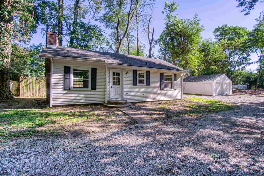 This remarkable property offers the perfect blend of privacy and convenience, boasting an expansive 2.5 acres of lush land that is truly a rare find. The landscape is graced with a canopy of mature trees, creating a natural barrier that shields a hidden gem ‹“ a tastefully remodeled 1-bedroom 1 bath cabin. The open floor plan maximizes the cozy space, making it feel roomy and comfortable. The living room has vaulted ceilings enhancing its look and feel. It also features a wood-burning fireplace giving it a warm and cozy touch. Moreover, there are windows on all sides that allow natural light to stream in, making space bright and airy. The living room blends seamlessly into the eat-in kitchen which has cabinetry for storage, a refrigerator, and an electric range. The bedroom features an abundance of natural light through multiple windows and closet space. It also has convenient access to the updated bathroom, which includes a vanity and tub/shower combination. The bathroom also leads out to a mudroom/storage area. This versatile space can be utilized to suit your specific needs and preferences. Outside is a 2-car detached garage for parking and a 24x30 pole barn for storage. This unique property on 2.5 acres on the east side of Evansville presents an exceptional opportunity.
