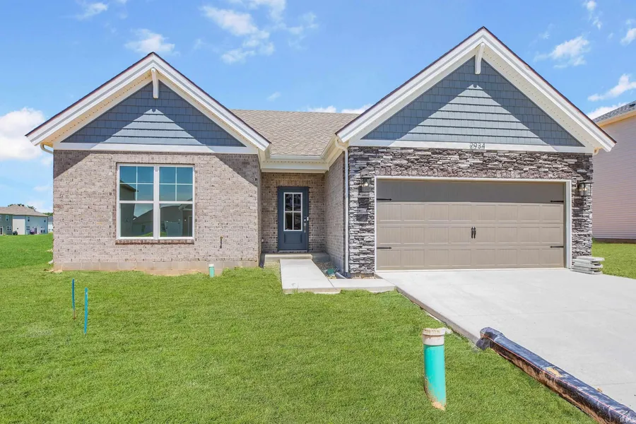 This Highland Series home is a one-level, three-bedroom, two-bath plan. The split-bedroom layout ensures privacy, while the foyer leads to a cozy family area and a charming eat-in kitchen. The kitchen includes granite countertops, a tile backsplash, and a stainless steel appliance package with a gas range. Attic storage is accessible in the garage. The owner’s suite is a peaceful retreat featuring an ensuite bathroom, including a double bowl vanity and a spacious walk-in closet. RevWood Select Granbury Oak flooring is throughout the main living areas and ceramic tile is installed in the wet areas. Jagoe TechSmart components are included. You’ll love this EnergySmart home! Prices may be changed at any time without further notice.