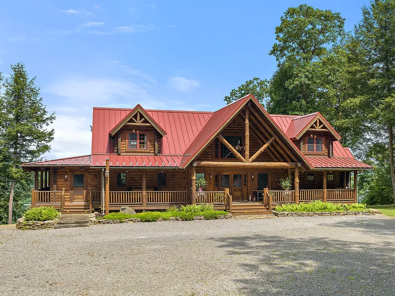 Welcome to The Camp on Riviera Road! This exquisite log cabin has received the esteemed recognition of being selected as the featured home in the prestigious 2021 Log Home Buyer's Guide edition of Log and Timber Home Living Magazine. This truly distinctive log home is perched on 12.89 acres overlooking the Allegheny River with breathtaking views. This spacious home offers 3 floors of living space filled with design elements that were handcrafted to create a cozy lodge-style atmosphere. The interior features white pine floors on the main level, beamed ceilings, a massive mud room, and an eat-in kitchen meant for gatherings! There is plenty of space to accommodate guests with an oversized breakfast bar, formal dining room, a great room with a floor-to-floor stone fireplace and ample seating. Retreat to the master bedroom on this floor and ease the day away soaking in the copper tub. Enjoy stunning panoramic views and the mountain air from the sunroom and deck. The second floor offers two ensuite bedrooms and an open loft den. The lower-level entertaining area boasts a custom bar with reclaimed wood, a stone fireplace, and access to the lower deck. Also on the lower level are two bedrooms, one with a saloon-inspired ensuite bathroom, and the other with bunk beds to host up to four guests. Other highlights include cedar-lined closets, a water softener, Anderson windows, radiant heated floors on the lower level, a metal roof, and upgraded electrical to 400 amp service.
