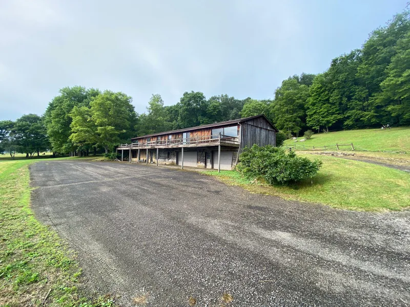 Beautiful setting! Whether you are looking for a business retreat, hunting & fishing lodge, campground or a venue for entertaining this is a must-see! Tucked back the winding driveway lies this unique and rustic lodge just waiting for your finishing touch. The park-like setting is breathtaking and includes various mature oaks and maples and amazing rock landscaping. The large parking areas are covered in asphalt millings and provides ample parking both in front and rear of the lodge. The large front deck makes for the perfect place to enjoy the stunning views including the nearly 3 acre “Lilypond” which is loaded with both fish and frogs! The property also features a spring as well as great access to Lake Creek. The wooded acreage features great quality timber for both potential income and mast production for the wildlife. The hunting and fishing possibilities are endless in the area. The lodge is designed to be the ultimate place to entertain. The large banquet room provides a great place for gatherings including a small kitchenette, half bath and outdoor entrance. There are two additional rooms that could be used as bedrooms or office space. The kitchen is very neatly decorated with unique features, most notedly the AGA cast iron range! The large open living room includes a fireplace and commanding views! The south end of the lodge features a greenhouse which makes for an amazing place to relax and enjoy the natural lighting! The building will require some updating and general maintenance. The unfinished basement has a ground-level entrance and would make the perfect workshop. The property also offers a large metal building for additional storage. There are also two locations with electric hook-ups for a camper or RV. The seller’s oil, gas, and mineral rights transfer subject to a current lease. Call the listing agent for your personal tour of this great property!