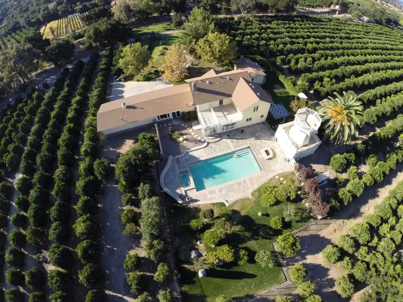 Located in Ojai's prestigious East End is this private Investment ranch estate with tranquil setting on Approx. 40 acres. As you enter through canopy of oaks and down a long driveway leads you to this private 1917 Farmhouse style home. Spacious living room with fireplace and Panoramic views greeting you from nearly every window. Den/library with french doors leading out to wrap-around porch. Hardwood floors, Open kitchen with formal dining and breakfast bar. enclosed patio for outdoor dining, Park-like setting with impeccable landscaping. There are also 4 additional homes on the property, including remodeled guest qtrs. To further enjoy the views you can step outside and view from deck of old grain storage tower or relaxing by the pool and spa. Also large agricultural barn with three bays. There is a private well. income producing turnkey citrus grove, set up for absentee owners. Well ou...