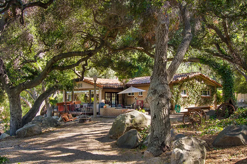 Gated entry opens to a courtyard-style yard with mature landscaping, trees and a flagstone patio leading to Custom Hacienda Style home. The covered front porch is a place to stop and take a breath as you enjoy the country life style all around you. The home with a wood-burning stove, remodeled country kitchen, granite counters, and formal and casual dining. Outside entertainment area with spa, eating area and over looking the creek will once again remind you that you have left the city life. Separate office, hobby or sleeping area, chicken coop, hay or equipment barn with a workshop area, storage sheds, corral, dog run, the well house all on 3 acres. Plus additional 39.19 acres of open space with separate area for pastures, hiking, vineyard, orchard or just enjoying nature. All this is just about three minutes from Stage Coach Station and The Summit, about 15 minutes from downtown Ojai, and approx. 15 minutes from 126.