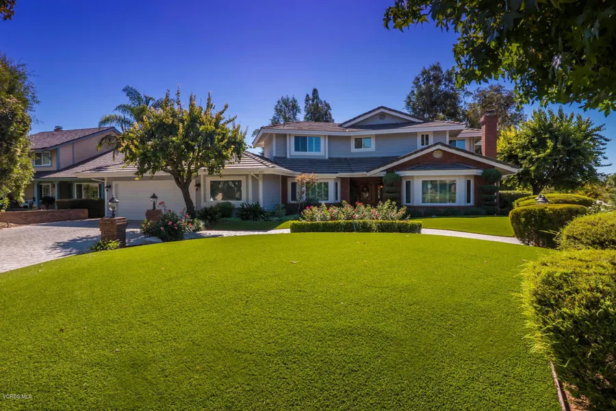 Amazing price! Beautiful custom home located in an exclusive area on a sweeping,1/2 acre corner lot w/oversized spa,stone patio,built-in BBQ centre.Loads of privacy.The interior features 4 large bedrooms,(1 down w/Murphy bed) & 3 baths.Huge master suite has custom fireplace & balcony.Lovely wood floors,new top quality carpets,fabulous remodeled gourmet island kitchen w/granite counter tops & tile backsplash. Plantation shutters thru out. New Anlin Del Mar, low E windows. New security/intercom systems.Step down living rm w/custom fireplace.Large formal dining w/coffered ceiling. Huge great room w/wet bar & stone fireplace. New counters & back splash in wet bar & laundry rm. New AC compressors & furnace.Complete reset on the roof 2 years ago. New plaster & tile on Spa. Living at its best!