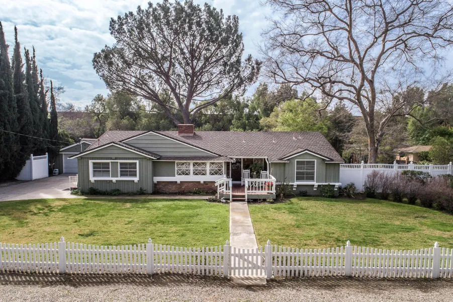 Calling all Car Enthusiasts! Unique and Rare Offering! Custom updated ranch-style home with an 8-10 car garage and a guest residence/Mother-in-law residence approximately 400 sq. ft. updated trailer with a private gated driveway, currently rented on a month-to-month agreement. The beautiful and updated main house features 3 bedrooms, 2 bathrooms, 1805 sq. ft. of living space and is sitting on a landscape and developed half acre+ lot with vinyl fencing, gated driveways, privacy hedges, fruit trees and more! The spacious backyard hosts a covered stamped concrete patio with an above ground spa, a grassy yard and more. Stepping inside the main house you are greeted with wood flooring, designer wall colors, original wood beamed ceilings, lighted ceiling fans and more...Stepping inside the main house you are greeted with wood flooring, designer wall colors, original wood beamed ceilings, lighted ceiling fans, a family room with a brick fireplace, a granite kitchen with a breakfast bar, a breakfast nook, appliances including a stainless refrigerator, a 5-burner gas range, a dishwasher and an oven. The stainless sink hosts a pull-out sprayer and a garden window. There is a laundry room off the kitchen with built-in storage and an exterior door. The inviting living room displays a custom ledger-style stone raised hearth wood burning fireplace, a beamed ceiling and is adjacent to the spacious dining room with a custom chandelier and view window to the backyard. There are two spacious secondary bedrooms with lighted ceiling fans, two hall bathrooms you must see them... retro and partially original in tile, yet updated with hardware, a glass shower door, toilets and more. The romantic master bedroom hosts dual closets and a window seat. Other fine features include fresh paint inside and out, copper plumbing, updated waste line ABS piping to street, an automatic sprinkler system, updated baseboard and door frames, updated hardware, updated lighting fixtures and much more! This is a one-of-a-kind opportunity for a very lucky Buyer!